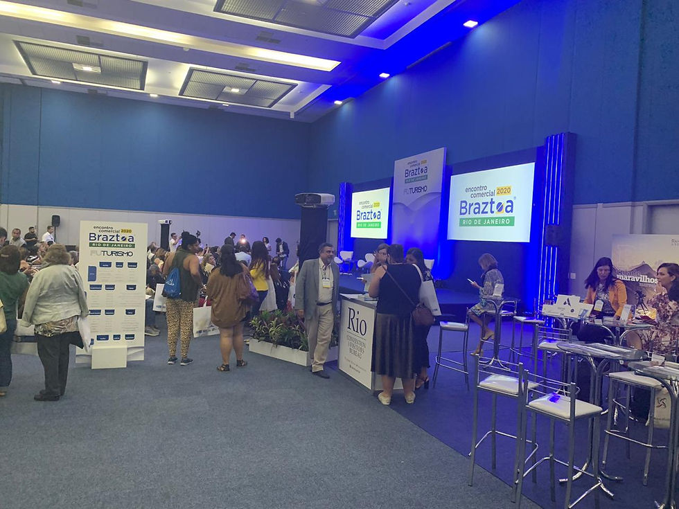 A Secretaria de Turismo de Magé apresentou os atrativos turísticos da cidade e representou a Região Turística Baixada Verde, composta por nove cidades da Baixada Fluminense: Magé, Belford Roxo, Duque de Caxias, Japeri, Mesquita, Nilópolis, Nova Iguaçu, São João de Meriti e Seropédica, no Encontro Comercial Braztoa Rio de Janeiro 2020, que reuniu mais de dois mil agentes de viagens de todo Brasil. O evento aconteceu nesta terça (10) no Centro de Convenções SulAmérica. De acordo com o Portal Brasileiro de Turismo, o evento realizado pela Associação Brasileira das Operadoras de Turismo (Braztoa) contou com mais 22 expositores, 40 associados, e realizou o lançamento do Anuário Braztoa 2020, estudo com dados inéditos do setor de turismo no país. O diretor de Turismo de Magé, Caio Bordignon, declarou a importância da representatividade do município no evento. "Está sendo bem positiva a procura por Magé e a admiração dos visitantes com os pontos turísticos. Antes, as pessoas conheciam Magé como cidade de passagem, agora está sendo representada em um evento de turismo. Como também, houve um grande aumento de interesse das pessoas com os lugares que Magé pode oferecer nos setores ecológicos, históricos e culturais", afirmou o diretor. Fotos: Divulgação